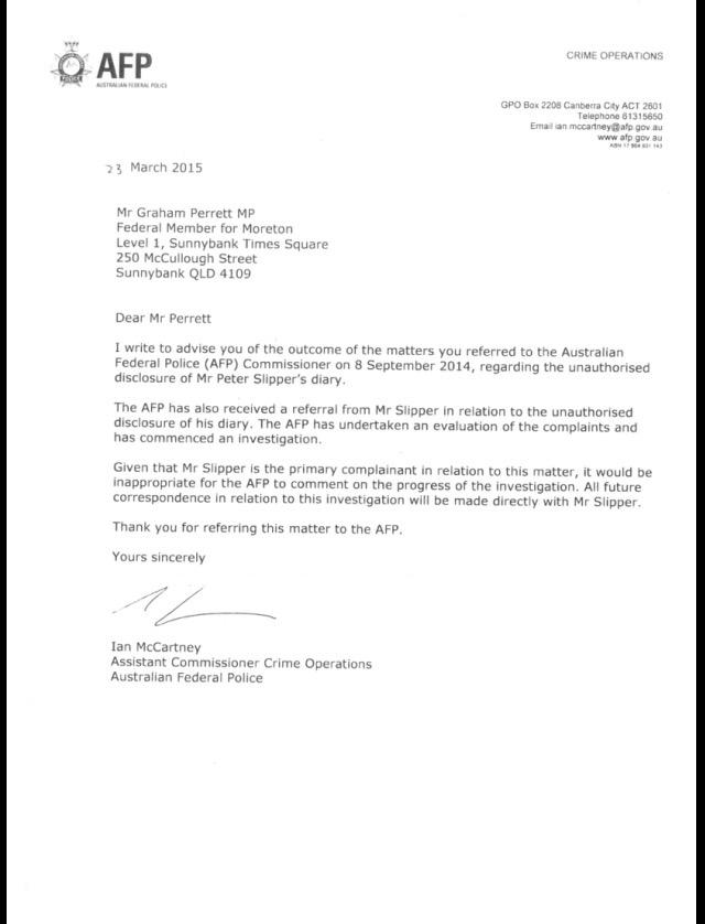 Brough’s admission on 60 Minutes in an interview with Liz Hayes that he’d asked Ashby for Slipper’s diary entries was a matter that should’ve resulted in an immediate AFP inquiry. It was an extraordinary admission, which underscored concerns about the abuse of the administration of justice in this matter.