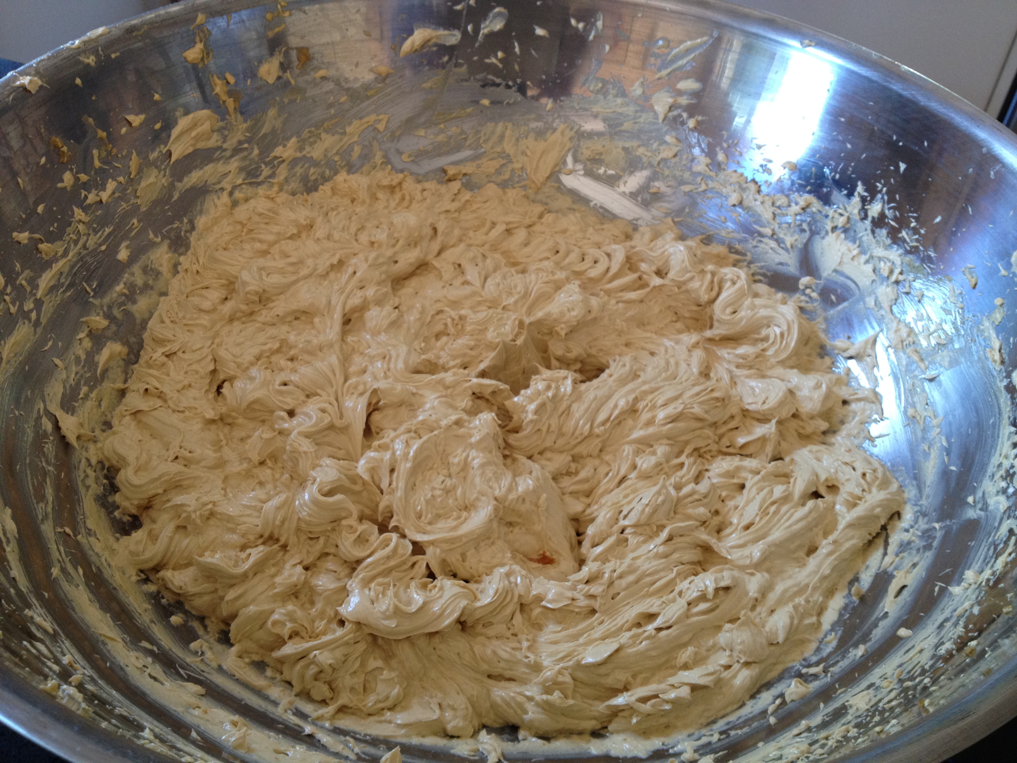 Cream the butter with the brown sugar, the grated fruit rinds, vanilla extract and marmalade. We call this the goop.