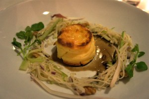 The entrée was worth starting world war 3 over. It was a twice-baked gruyere soufflé with mushroom jus. Gruyere is such an overpowering cheese, and I am so heavy handed with ingredients I’m never game to include it. The flavour was strong but delicate, if that makes any sense at all. The balance was just right. Words to describe the entrée included gorgeous and fabulous. I didn’t use any words but rather grunted my way through the entrée, and then had to be restrained from licking the plate.