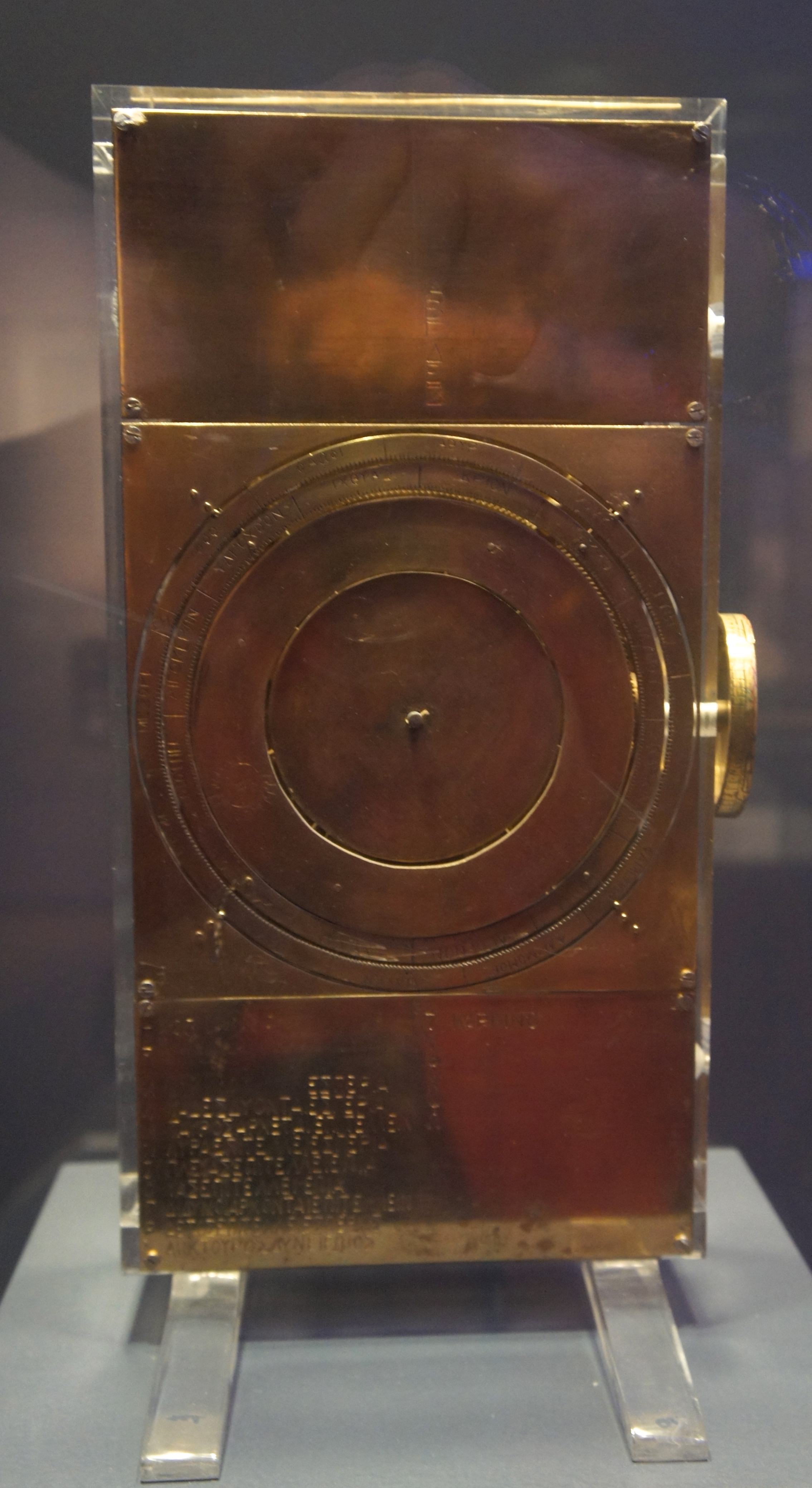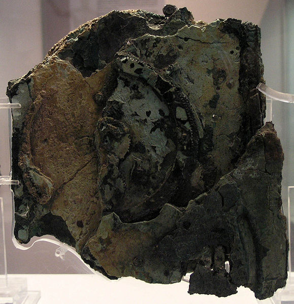 The Antikythera Mechanism. Its rear view. Photo courtesy of Wikipedia.
