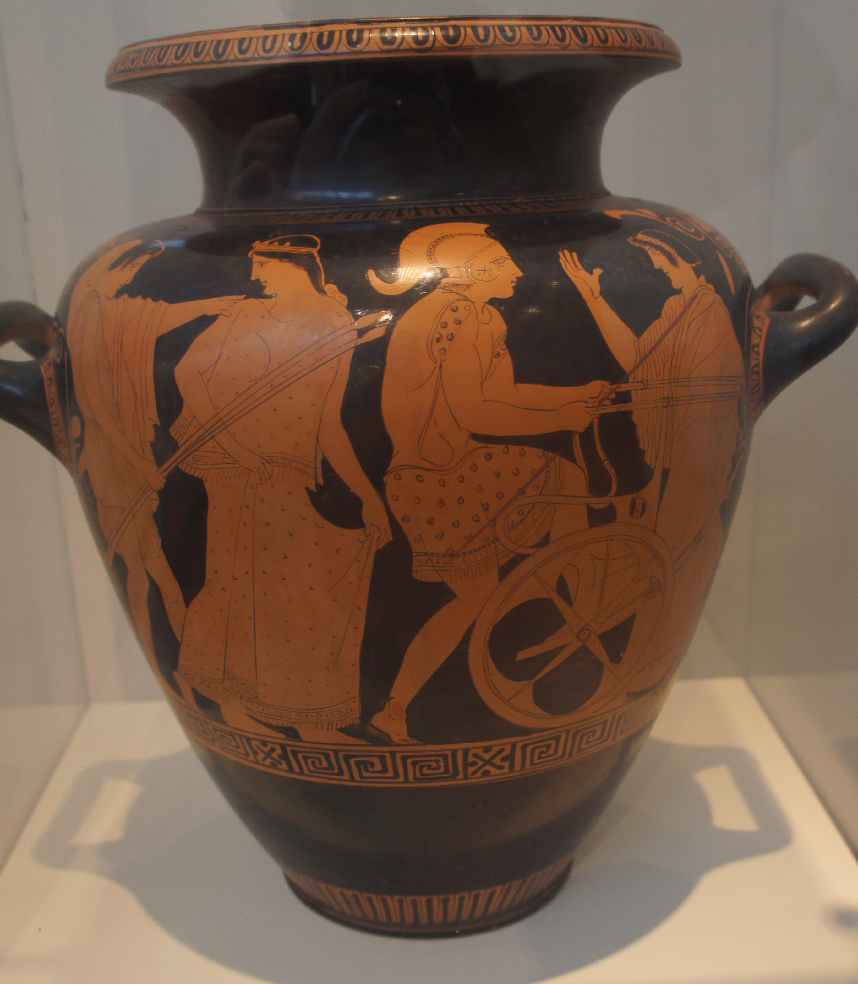 The figures depict the leads in the story of Troy. It was used as a funerary urn and painted by Polygnotos in circa 430-420BC Photo by JE