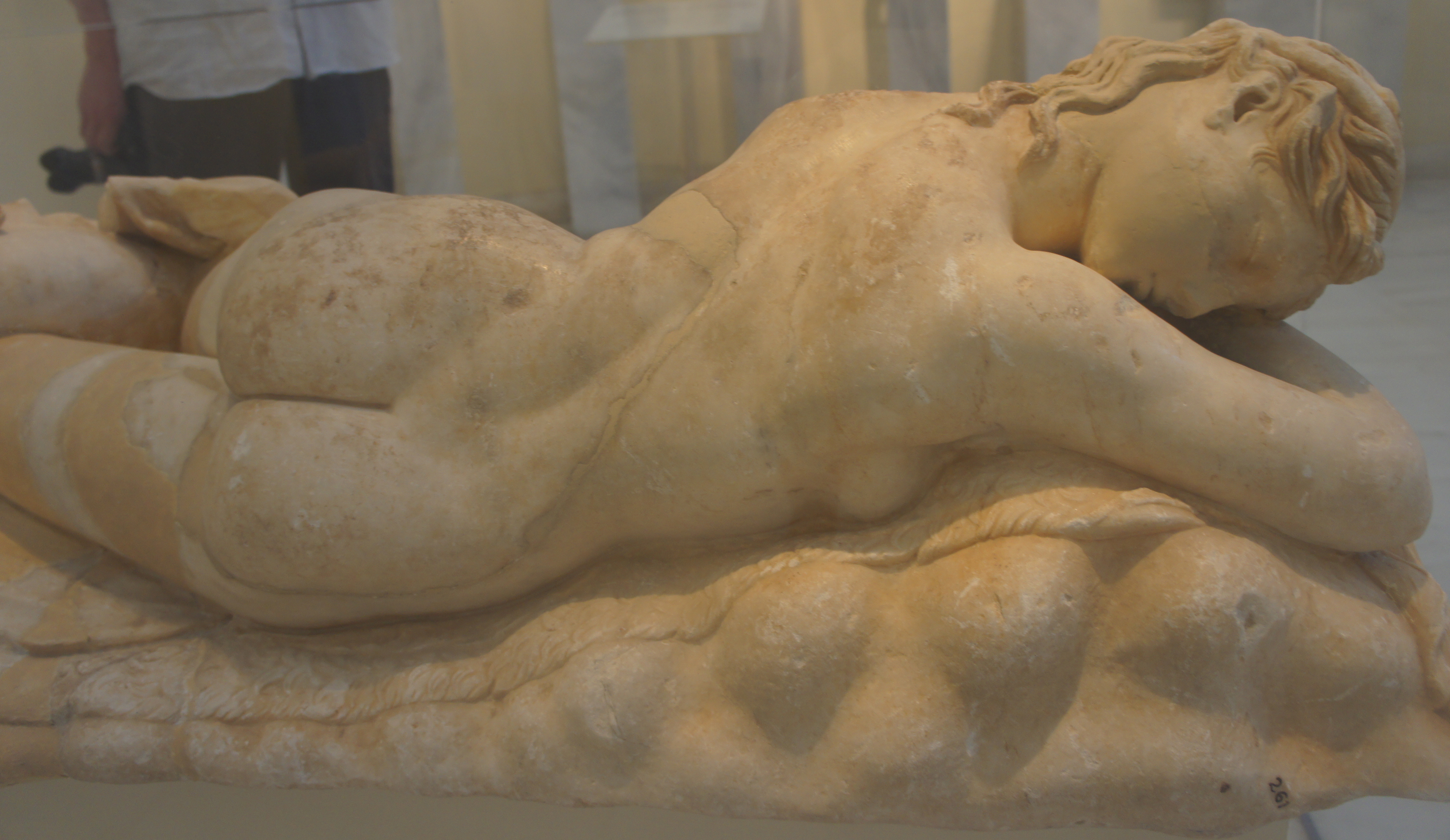 This is a statue of a sleeping Maenid found on the southern side of the Athenian Acropolis. Circa AD117-138. Photo by JE