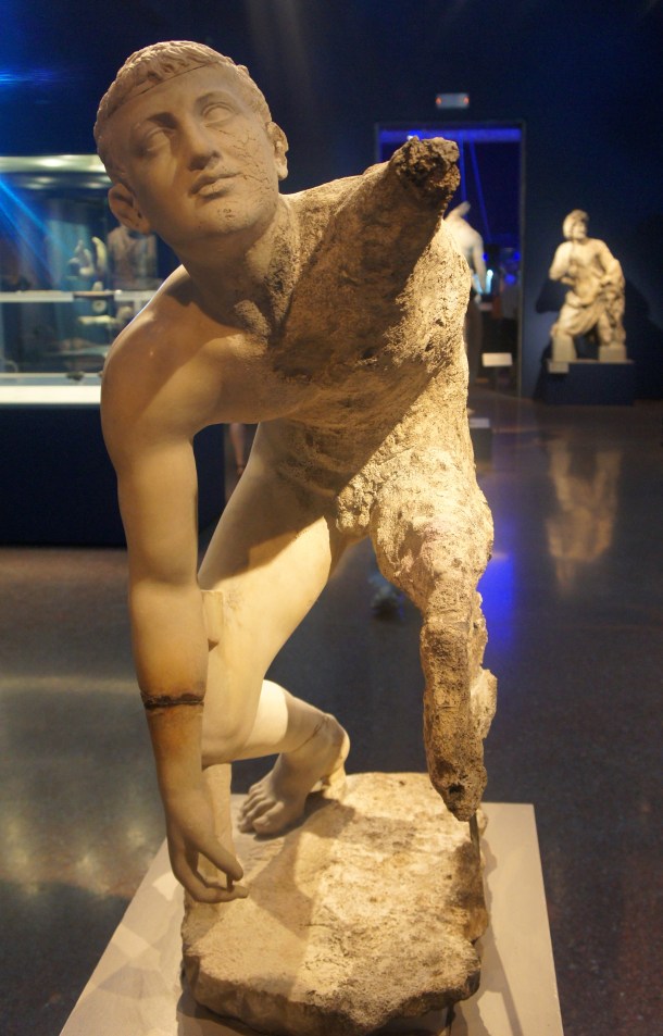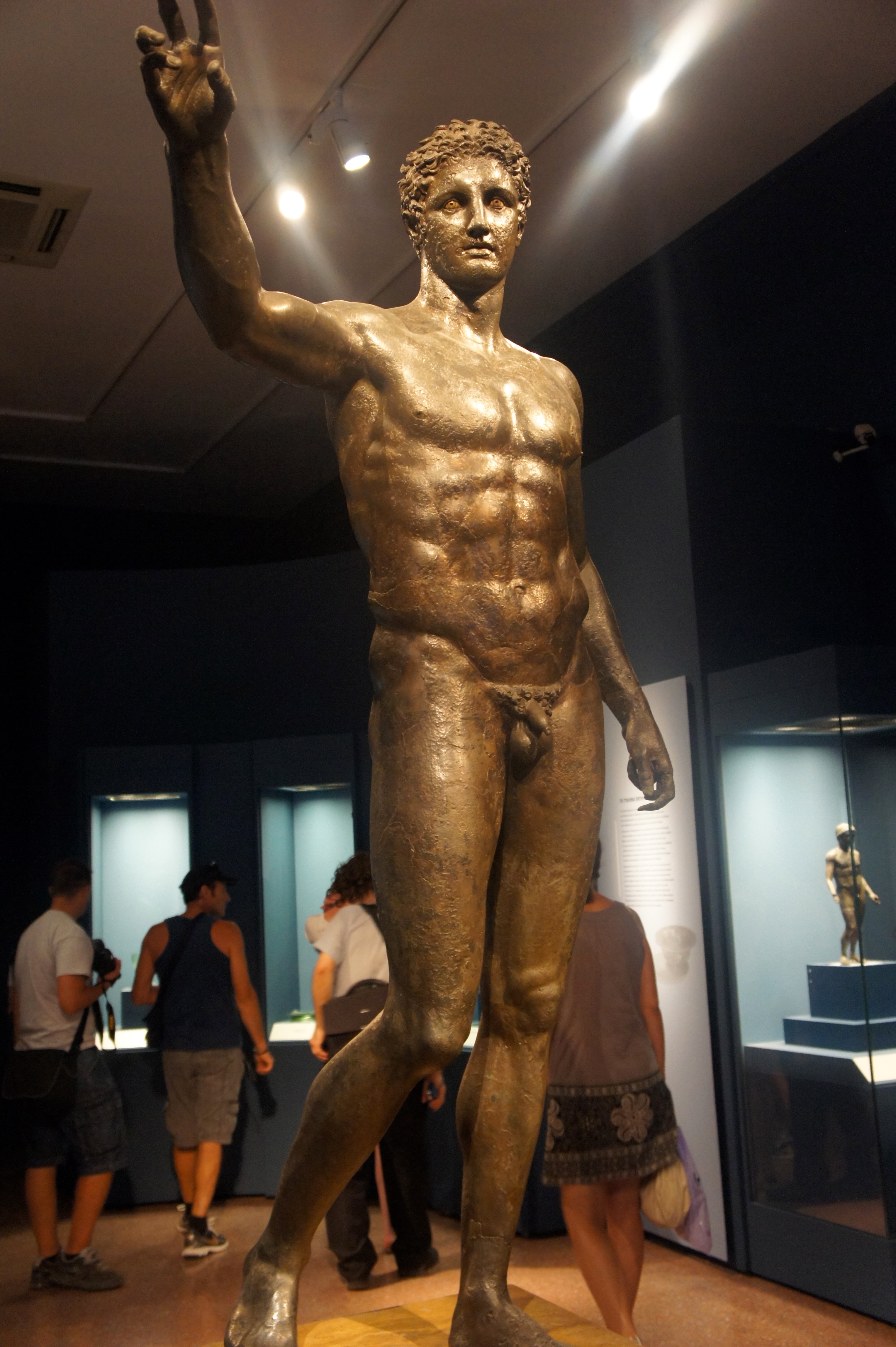 The Antikythera Youth, as it now famously known, is a bronze statue that experts date specifically to 340-330BC. There is so much speculation as to the identity of who it may be that I prefer he remains a mystery with a six-pack. Photo by JE.